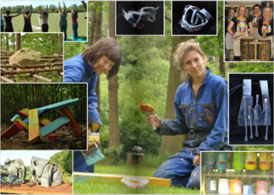 Kies of combineer: o.a edelsmeden, objecten maken, beeldhouwen, bronsgieten, spelen met verf en doek Panelen en andere materialen, Installaties maken. Of “Ontdek je creatieve ik” (voor iedere deelnemer een persoonlijk programma). kies voor een creatieve vakantie in Nederland.