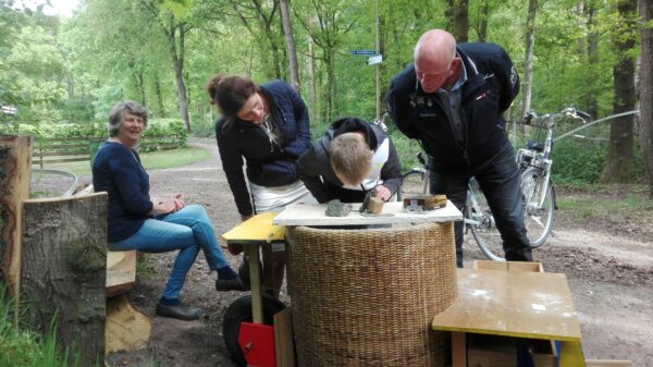 Als blijvende herinnering worden passanten uitgenodigd om op een kruising van landgoed waar meerdere wandelroutes samen komen plaats te nemen in de verhalenstoel.